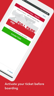 Benefits • Stop worrying about misplaced or expired passes. Buy and activate VIA fares and passes instantly on your phone. • Use Visa & Mastercard for purchases and set up an optional account to make future visits faster. Add funds to your account using cash at retailers. • Store multiple tickets on your phone for future activation. • Touchless payment is safe and quick. • Take your tickets with you when you upgrade your phone. • Quick links to trip planning and Next Bus information at your fingertips anytime. • Available in English and Spanish.