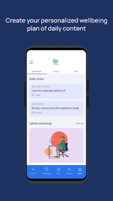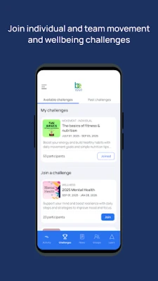 Be Well is a challenge-led wellbeing platform built to change behavior and build habits that help employees thrive, even on the most demanding days. It connects people through movement, tracks what matters and delivers personalized content across four pillars of wellbeing: physical, mental, workplace and personal.