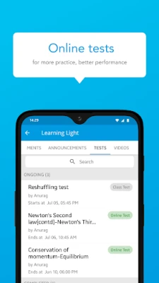 - Get online tests and exams