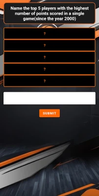 Career Guess: Match players with their career achievements. Find the Starter: Identify the starting lineup for historic games. Who Am I: Solve riddles to guess basketball legends. Top 5: Name the top players in various stats or moments. 50/50: Choose between two options—can you make the right call?