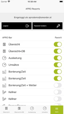 Mit APRO® Reports haben Sie Umsatz, Auslastung, Tische, Kellner oder Renner/Penner all Ihrer Betriebe jederzeit übersichtlich am Smartphone.