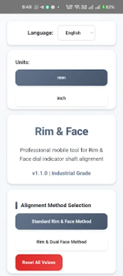 Rim & Face is the ultimate mobile tool for precision shaft alignment calculations using dial indicator readings. Completely redesigned with enhanced mobile interface for maintenance engineers, millwrights, and mechanical professionals.