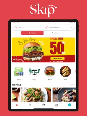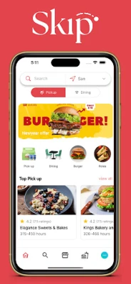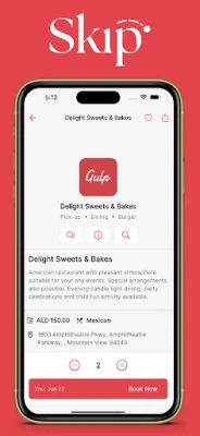 Skip app offers food pick-up and table reservation on your favourite restaurents. You can book your food and pick-up after preparation completed. You also reserve table on your favourite restaurents.