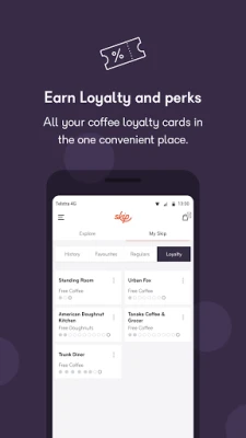 Wallet overflowing with annoying little pieces of cardboard? Wherever you go with Skip, we’ll track when it’s time for your free coffee so you don’t have to.